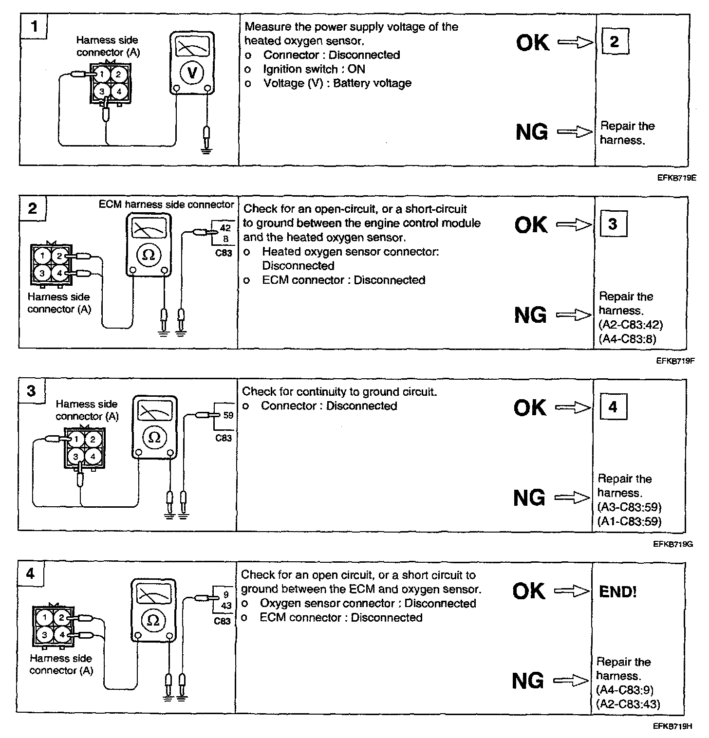 NOTE: If you release the accelerator pedal suddenly after engine running about 4000 rpm, fuel supply will stop for short period and the O2 sensor service data in the HI-SCAN (Pro) will display values 200 mV or lower.