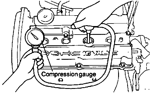 CHECKING COMPRESSION PRESSURE1. Before checking engine compression, check the engine oil level. Also check that the starter motor and battery are all in normal operating condition.