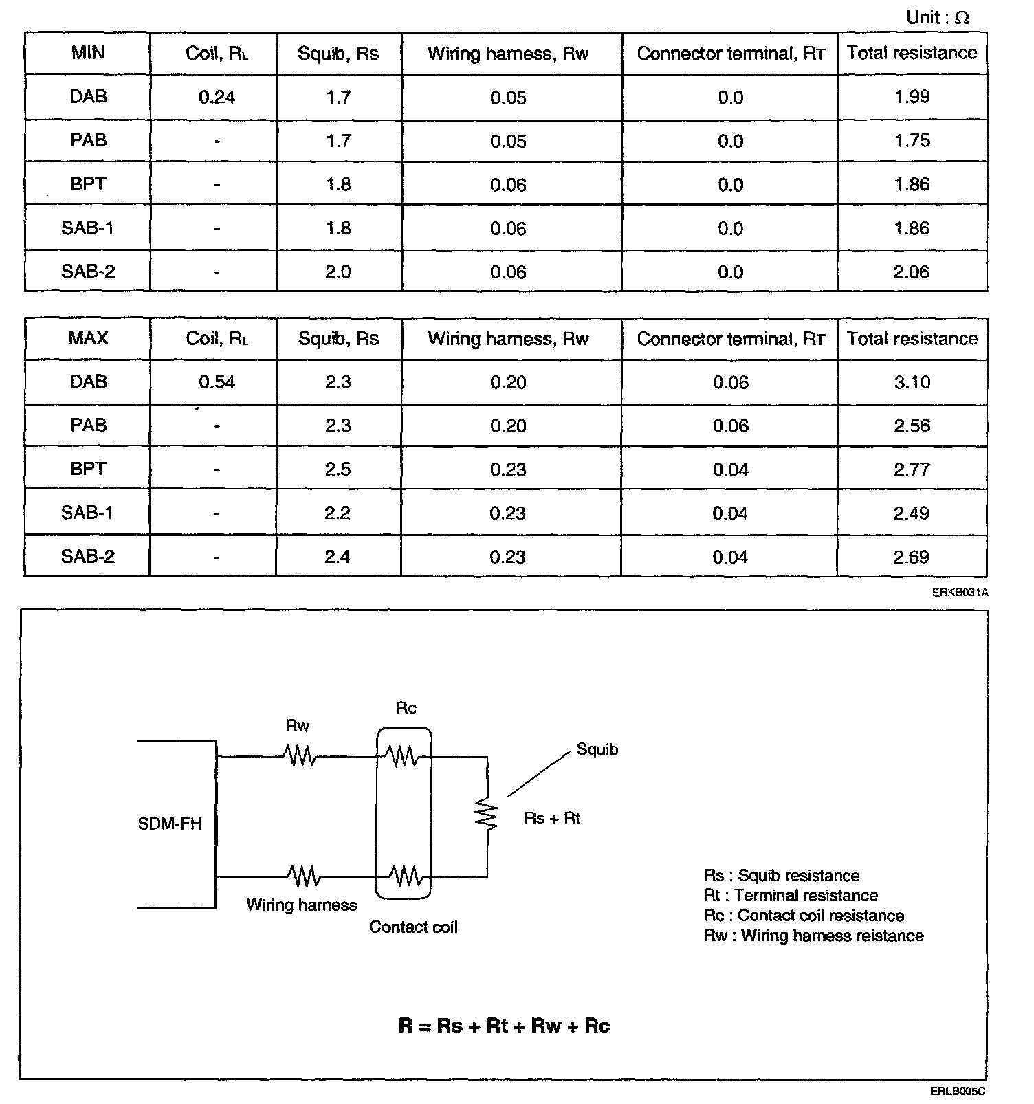 PAB, SAB, BPT - Airbag Squib Resistance Limits: