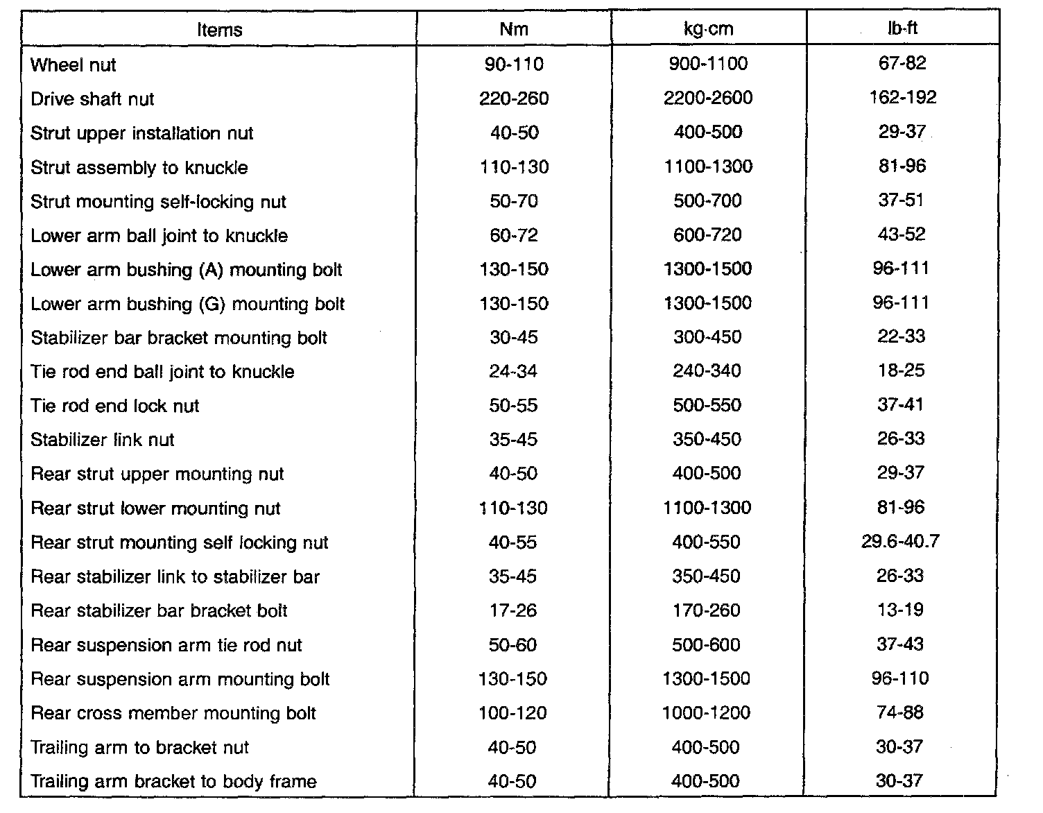 Tightening Torque