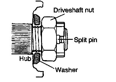 2. Install the washer behind the driveshaft nut with the convex side outward as shown in the illustration.