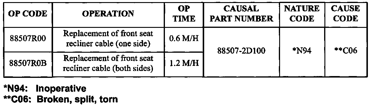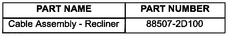 This bulletin provides the procedure for replacement of the front seat track recliner cable. The front seat recliner cable has recently become available as a separate service part from the front seat track assembly.