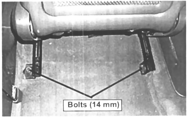 5. Remove the front seat plastic rear mounting covers and rear mounting bolts (14 mm, 2 each).
