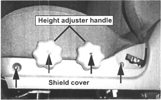 11. Remove the two front seat height adjuster handles and front seat outboard shield outer cover by removing 4 screws.