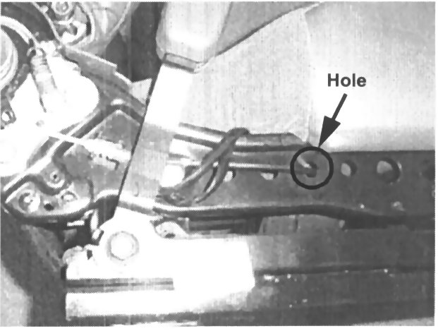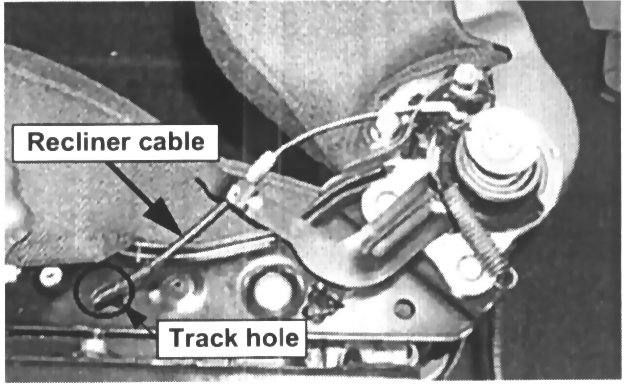 18. Pull the recliner cable through the hole in the seat track. Make sure to note which hole in the seat track the recliner cable is routed through.