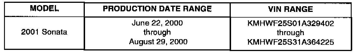 Model: Sonata vehicles with 2.4L DOHC engines and automatic transaxles.
