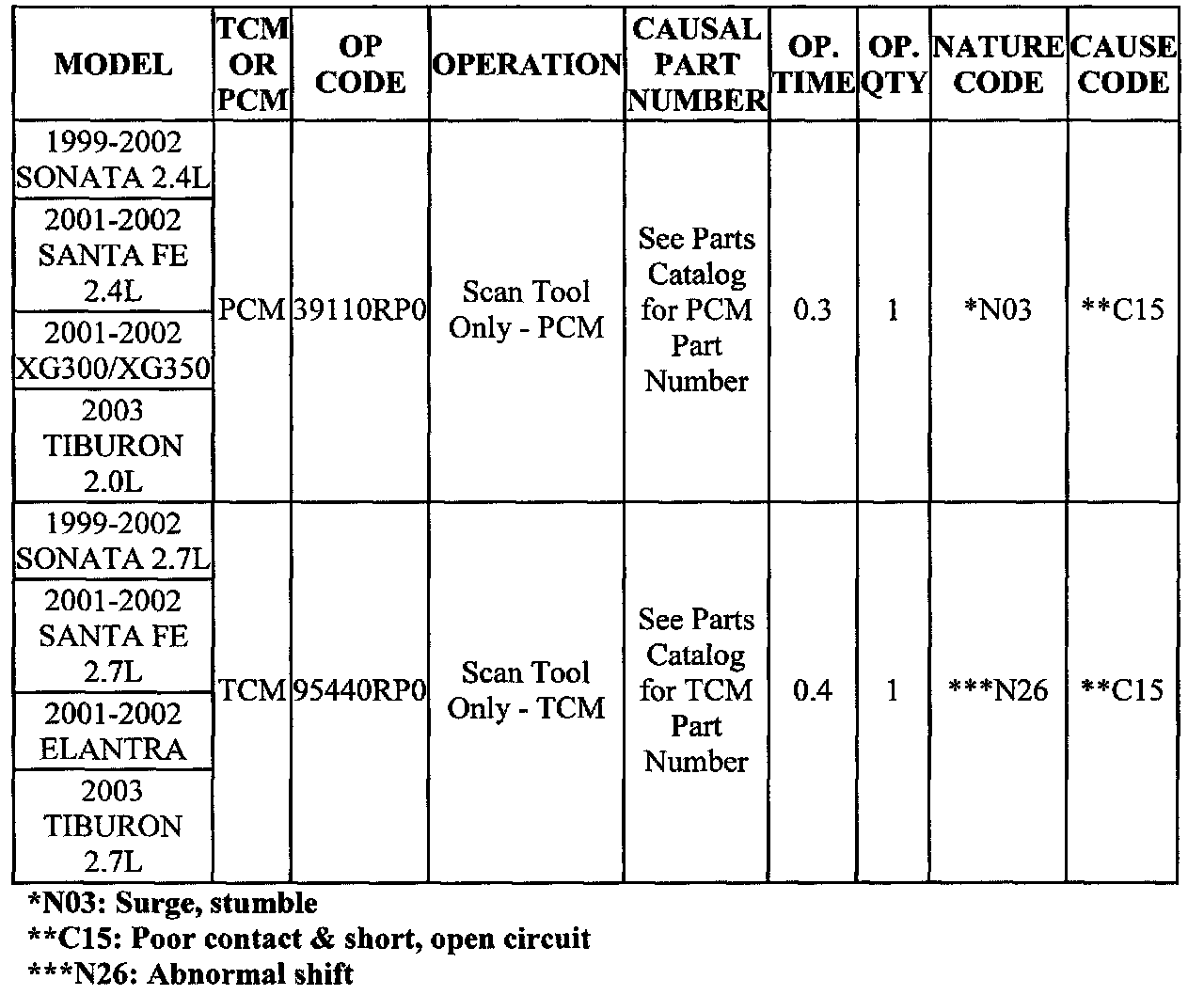 Elantra 2001-2002, Santa Fe 2001-2002, Sonata 1999-2002, Tiburon 2003, XG 300 2001 and XG 350 2002