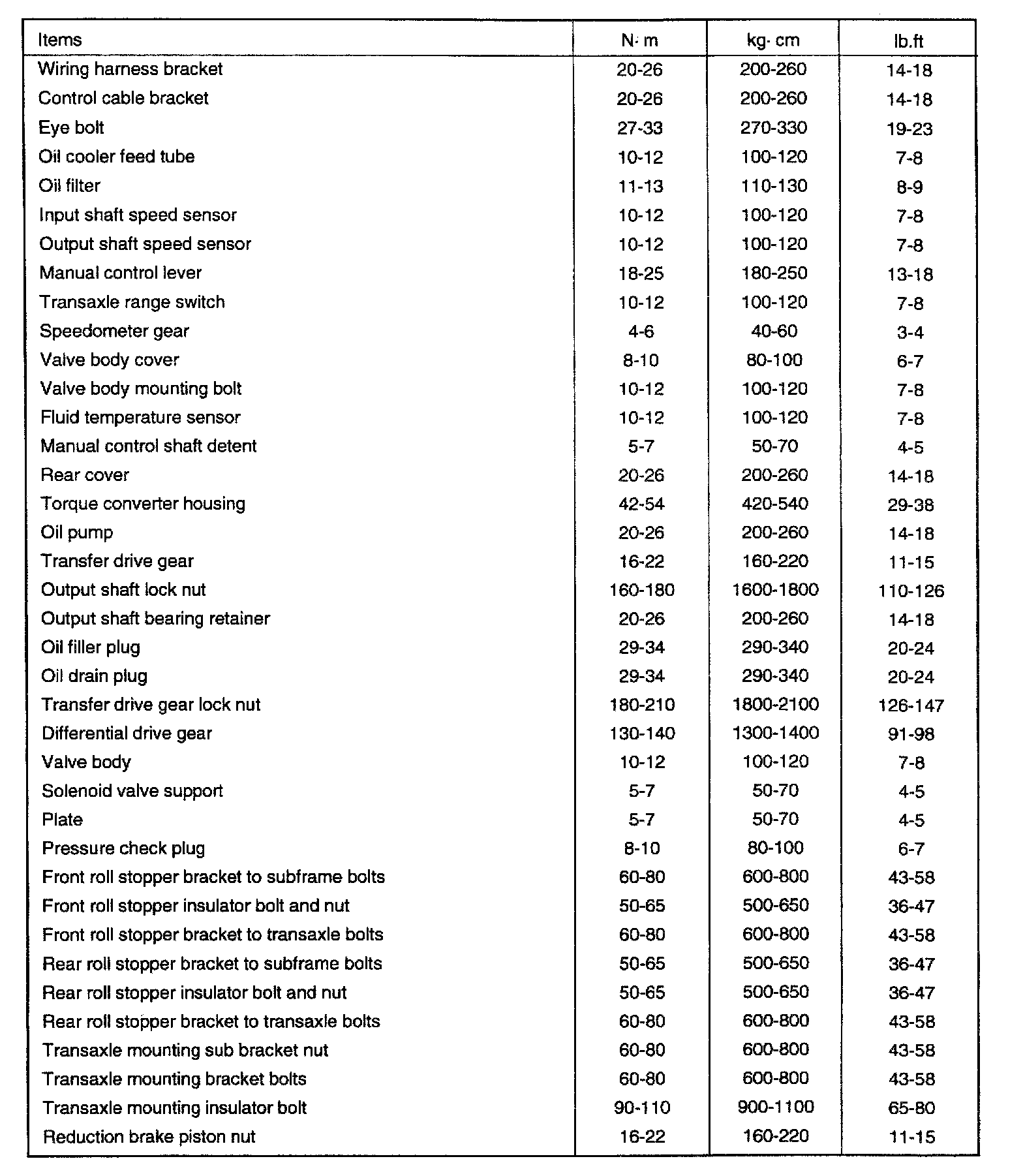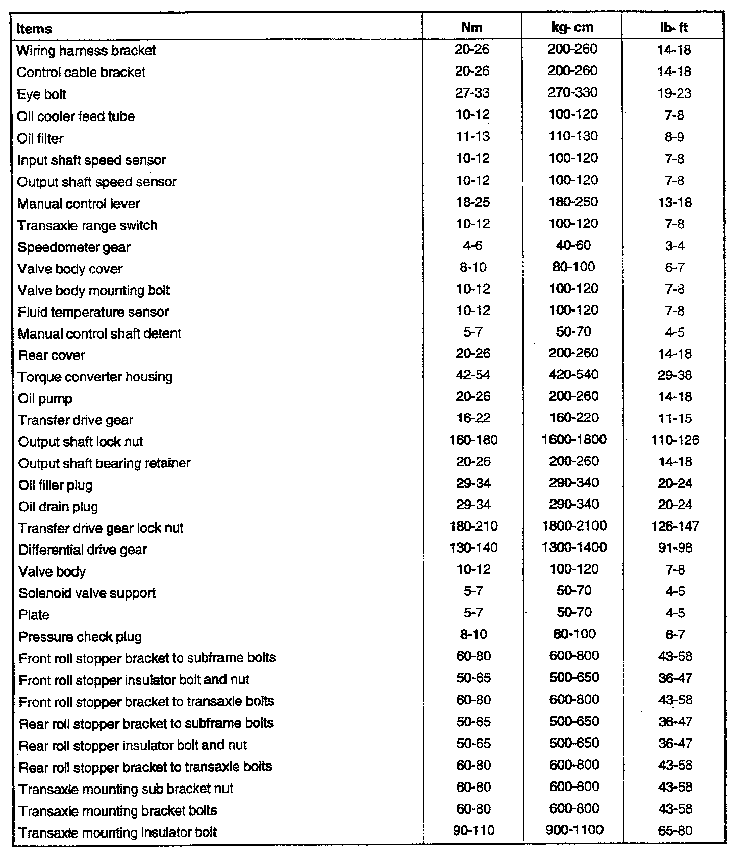 F4A42 4-spd/F5A51 5-spd A/T, Transmission Torque: