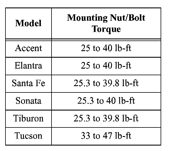 8. Retighten the mounting nuts/bolts to the torque specified in the shop manual.