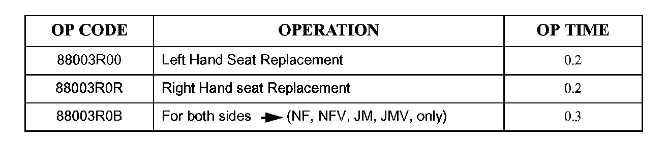 Normal warranty coverage applies. This procedure is part of the seat installation time for procedures that require the seats to be removed and installed. If a seat requires adjustment without additional parts replacement, use operation code 88003ATT*, N95,