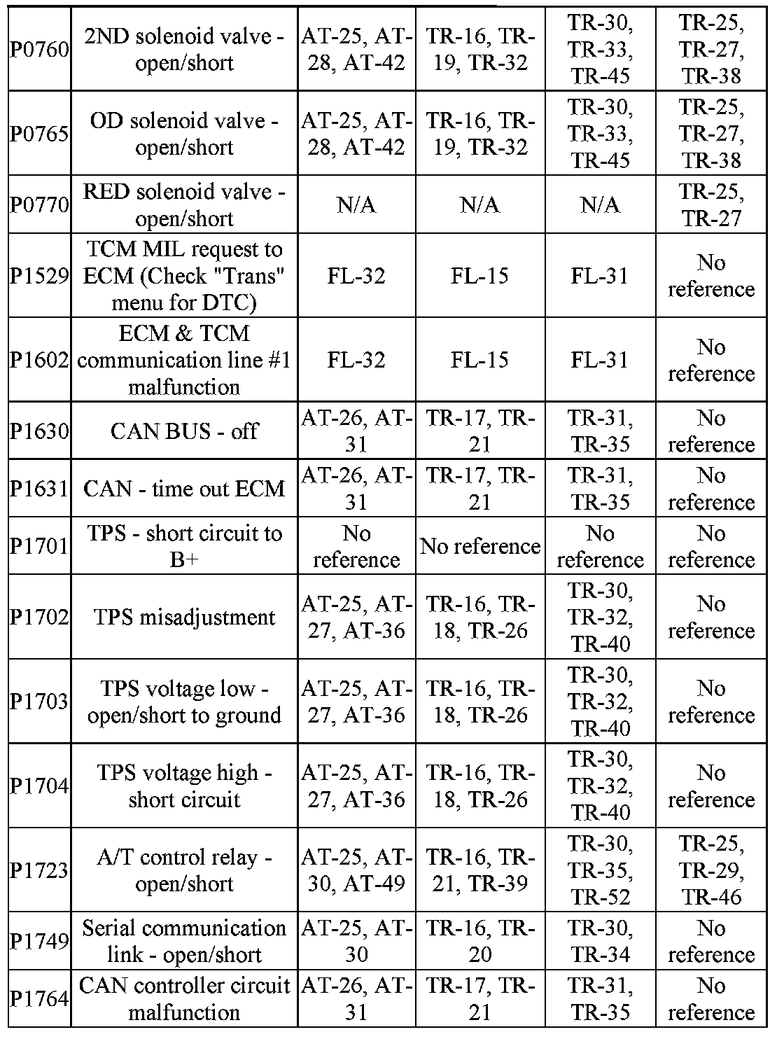 A/T - DTC References