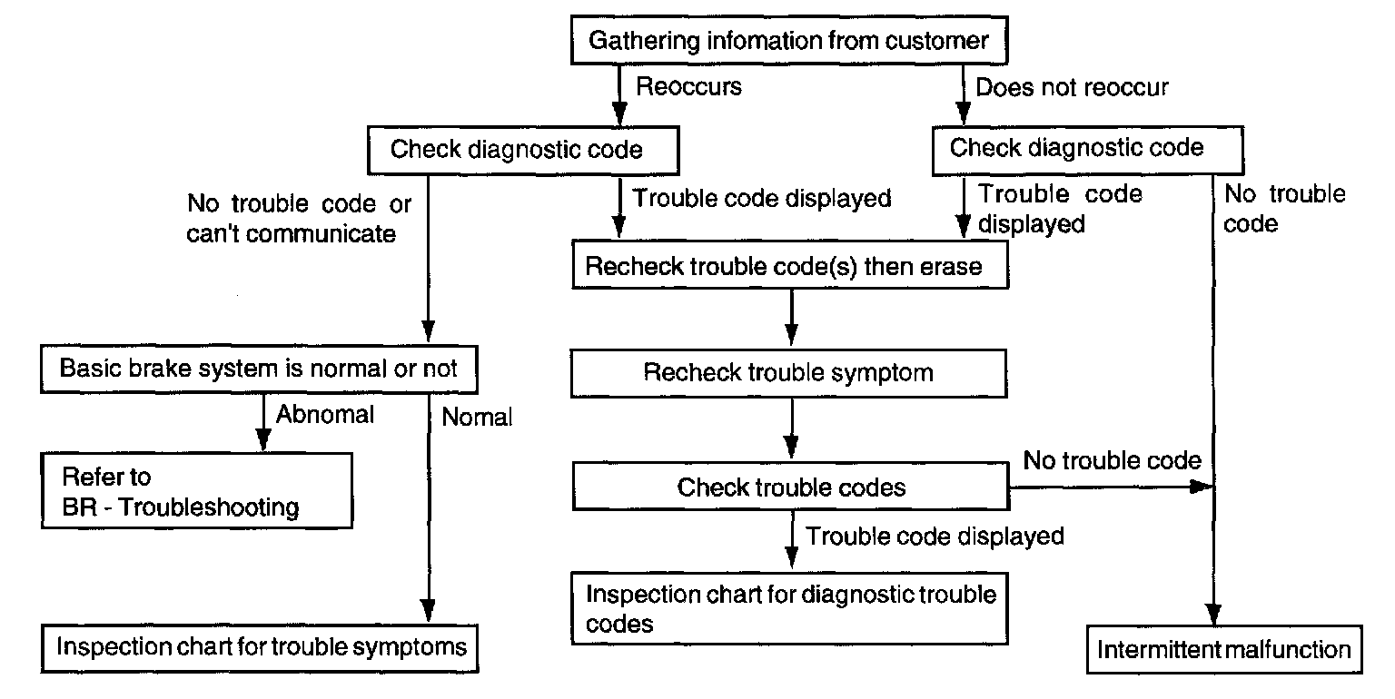 STANDARD FLOW OF DIAGNOSTIC TROUBLESHOOTING- Using the customer problem analysis check sheet for reference, ask the customer in as much detail as possible about the problem.