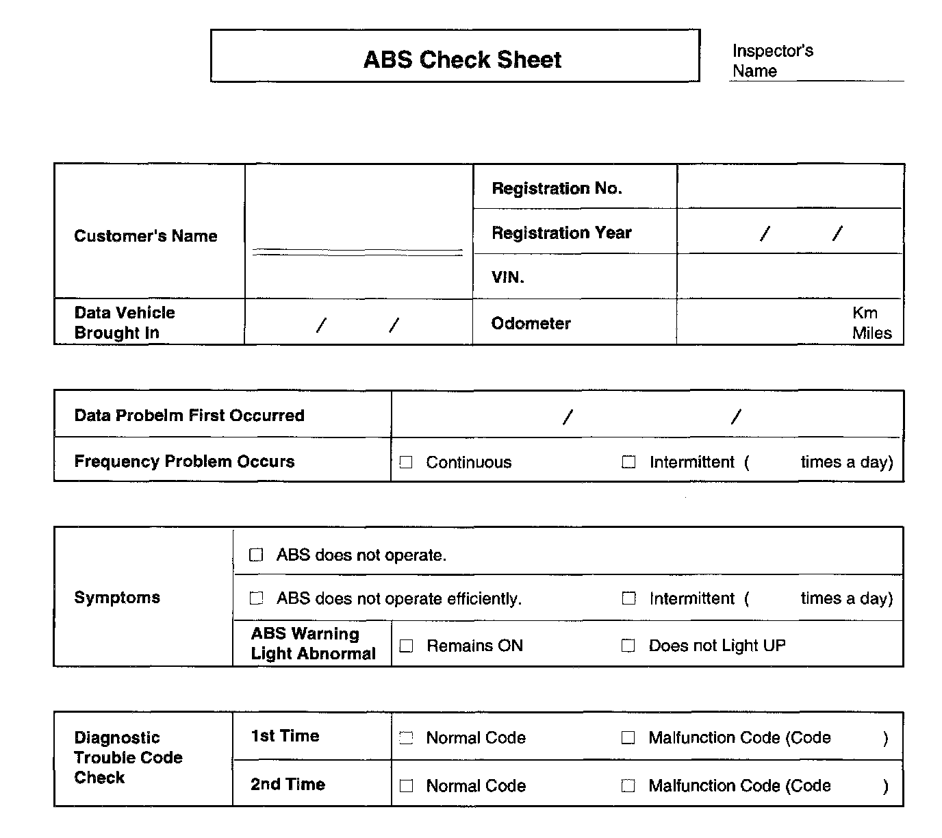 ABS CHECK SHEET