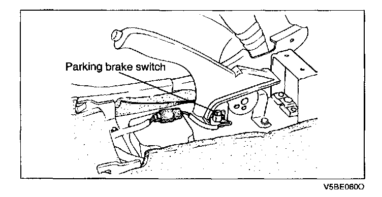 The parking brake switch is a push type and located under the parking brake lover. To adjust, move the switch mount up and down with the parking brake lever released all the way.