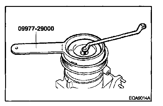 1. Remove the clutch hub retaining bolt with the aid of a spanner wrench.