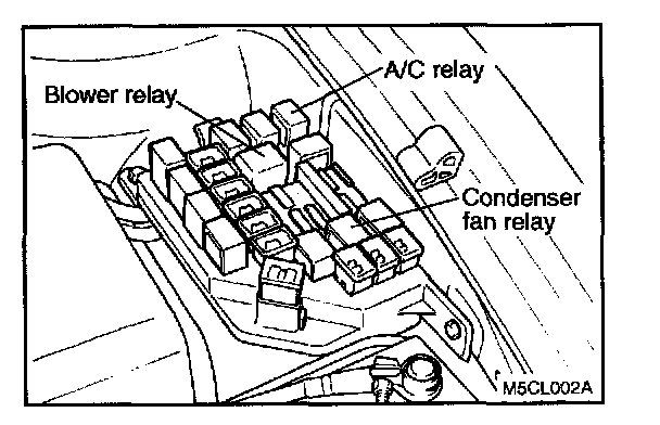 AIR CONDITIONING RELAY AND CONDENSER FAN RELAY1. Remove the battery ground cable.