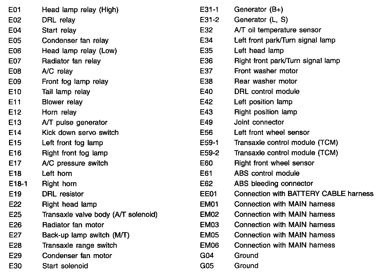 Engine Harness Index: