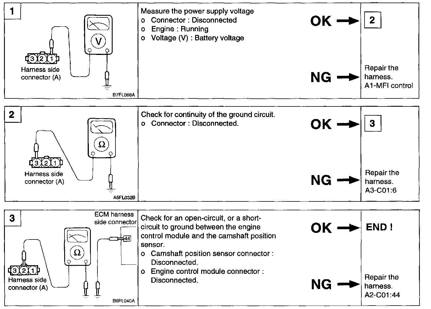1. If the camshaft position sensor does not operate correctly, correct sequential injection does not occur so the engine may stall or run irregularly at idle or fail to accelerate normally.