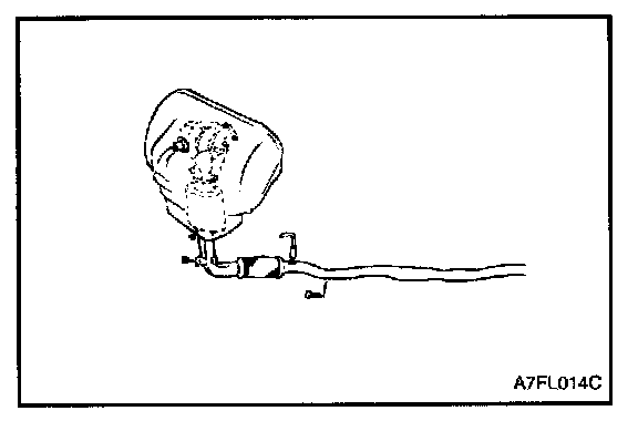 The heated oxygen sensor senses the oxygen concentration in the exhaust gas and, converts it into a voltage which is sent to the ECM. The heated oxygen sensor outputs about 800 mV when the air fuel ratio is richer than the theoretical ratio and outputs about 100 mV when the ratio is leaner (higher oxygen concentration in exhaust gas.) The ECM controls the fuel injection ratio based on this signal so that the air fuel ratio is maintained at the theoretical ratio. The oxygen sensor has a heater element which ensures the sensor performance during all driving condition.