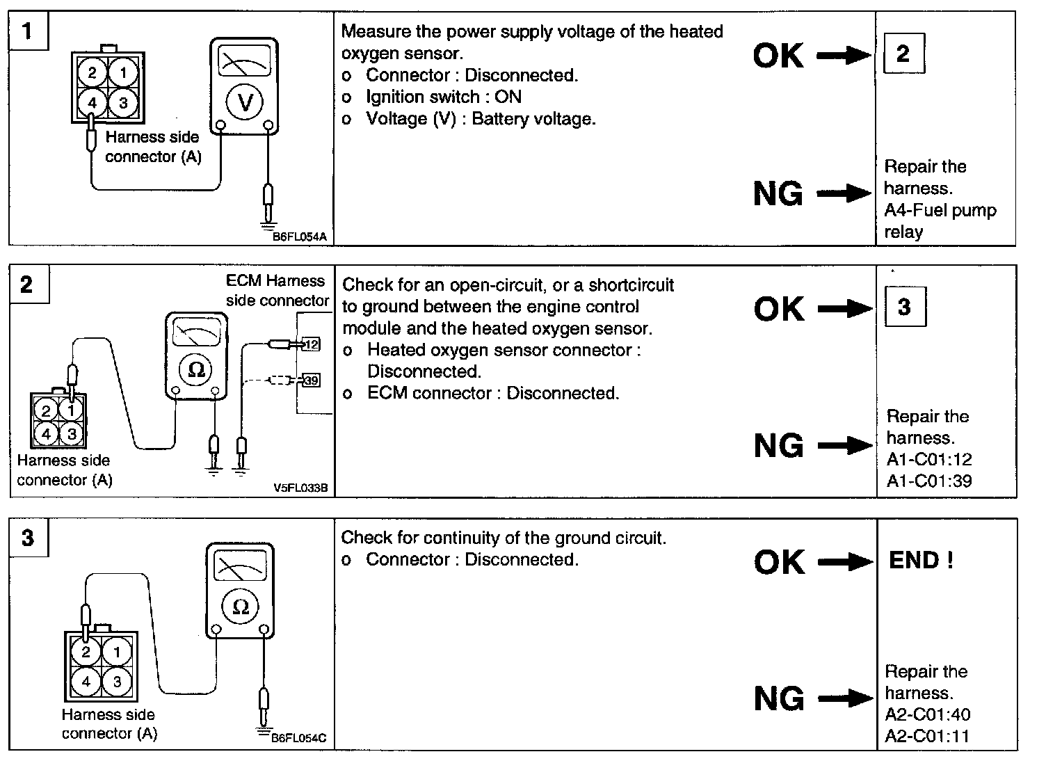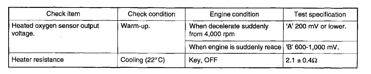 2. If the heated oxygen sensor check has been normal, but the sensor output voltage is out of specification, check the following items related to the air fuel ratio control system.