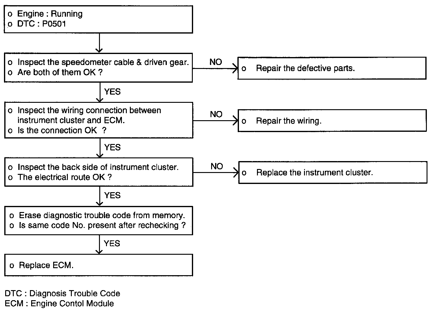 The vehicle speed sensor is a reed switch. The vehicle speed sensor is built into the speedometer and coverts the transaxle gear revolutions into pulse signals, which are sent to ECM.