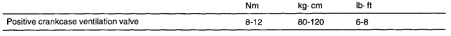 Positive Crankcase Ventilation Valve: Specifications