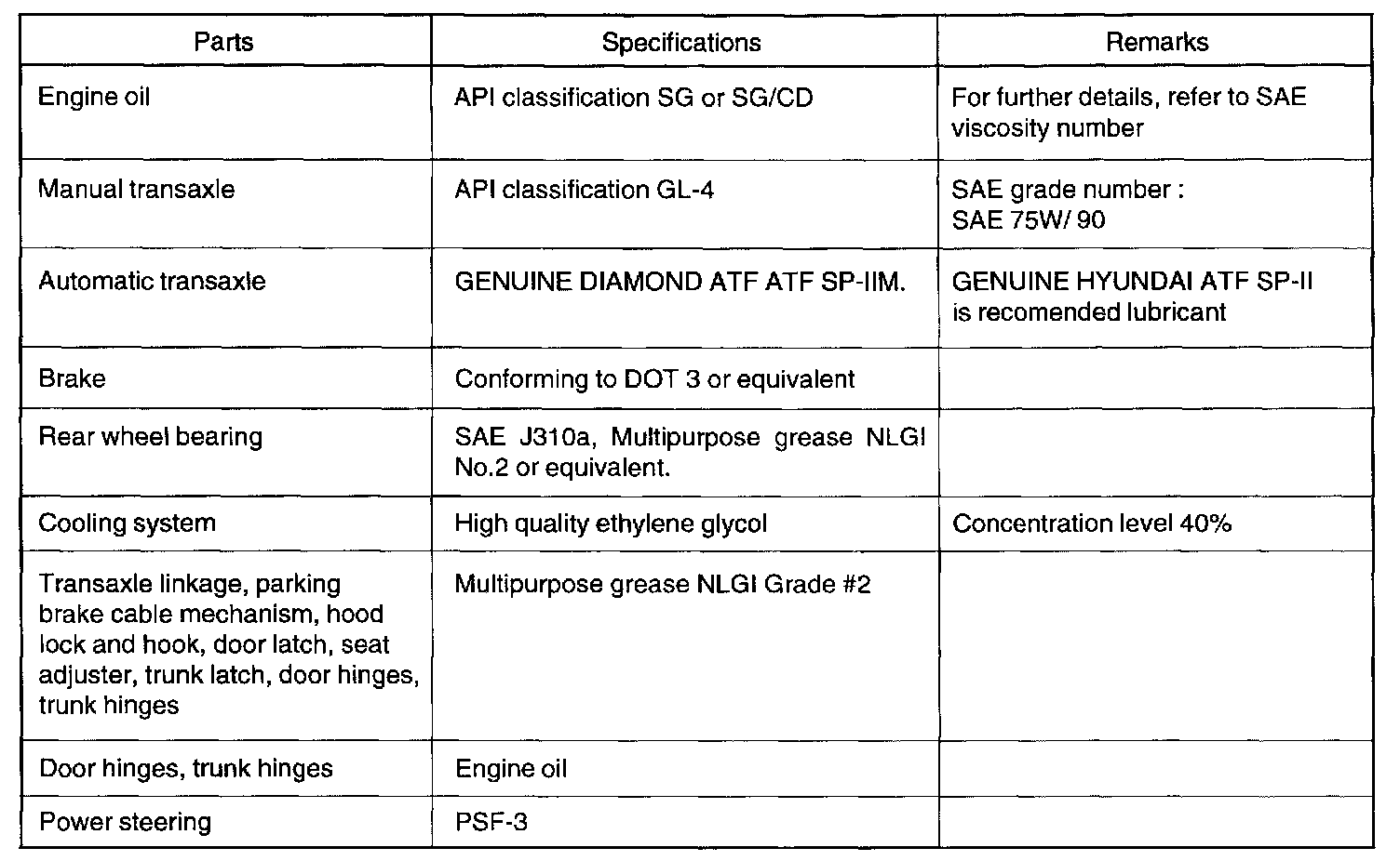 General Fluid Specifications