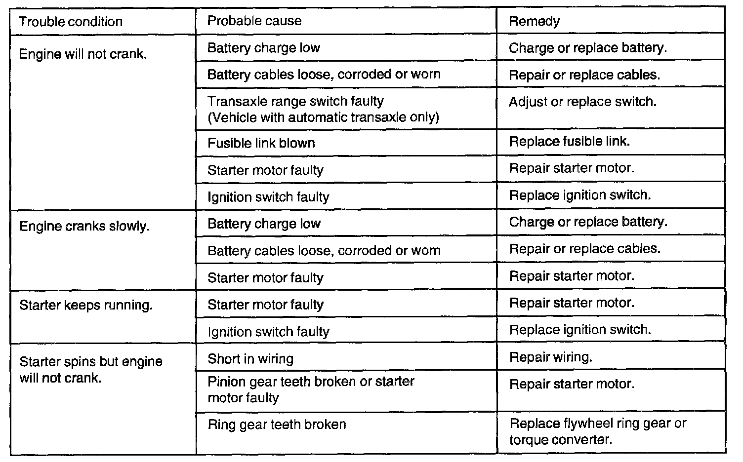 Starting System: Testing and Inspection