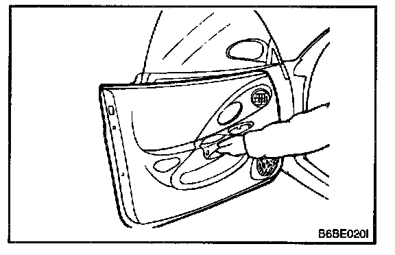 1. Remove the door window regulator handle and then remove clip using a piece of cloth (Manual type only).