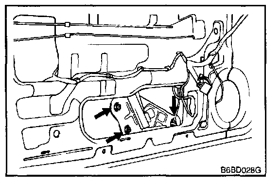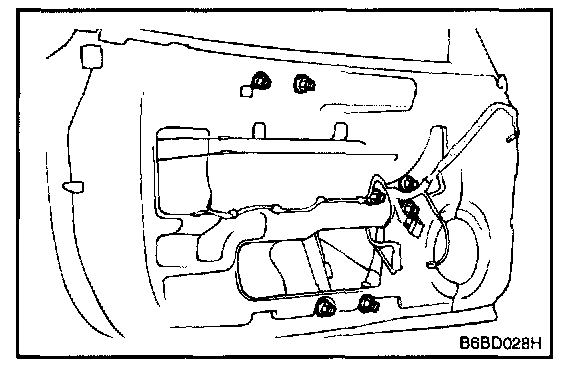 12. Remove the door latch and door lock actuator mounting screw and bolt.