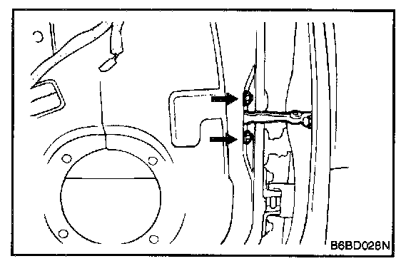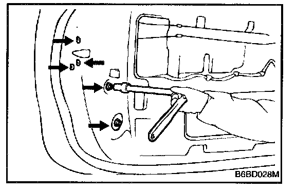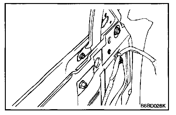 6. Remove the glass stopper bolts, and carrier plate bolts from the door glass, and then pull out the door glass through the window slot.