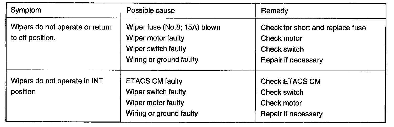 Windshield Wiper - Troubleshooting: