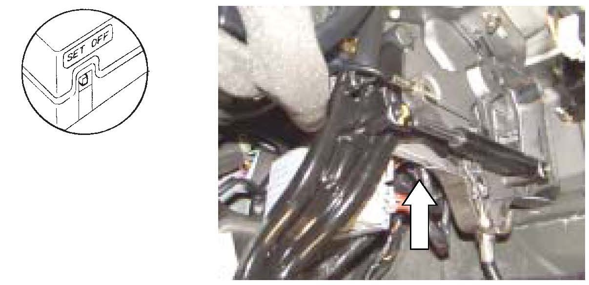 The 2001 MY XG300 Shop Manual explains a procedure that requires you to access the ETACM to move a switch to the "SET" position when programming new remotes But the location of the ETACM in the XG300 is very difficult to reach, and you cannot see the "OFF/SET" switch.