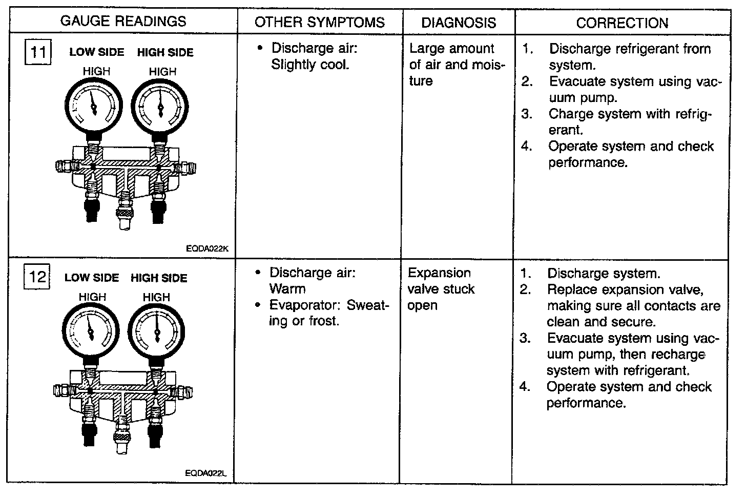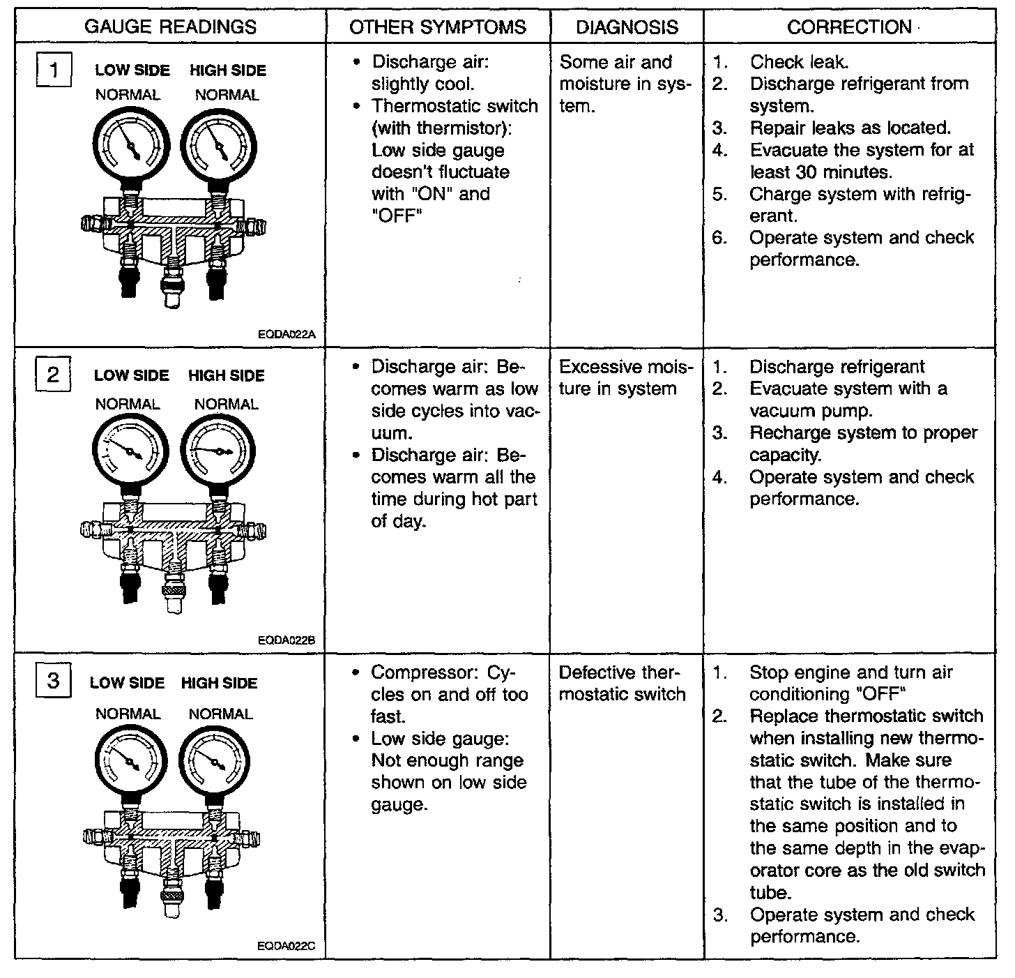 The test gauge indicators shown in the above information are to be used as typical examples of common problems which you may need to diagnose.