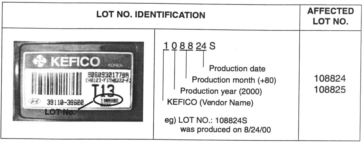 AFFECTED PCM LOT NO. IDENTIFICATION