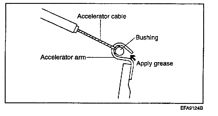 1. When installing the return spring and accelerator arm, apply multi-purpose grease around each moving point of the accelerator arm.