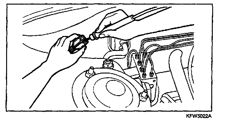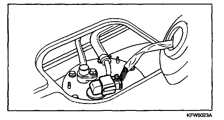 5. Apply battery voltage to the terminal for the pump drive and activate the fuel pump. With fuel pressure applied, check that there is no fuel leakage from the pressure gauge or connection part.