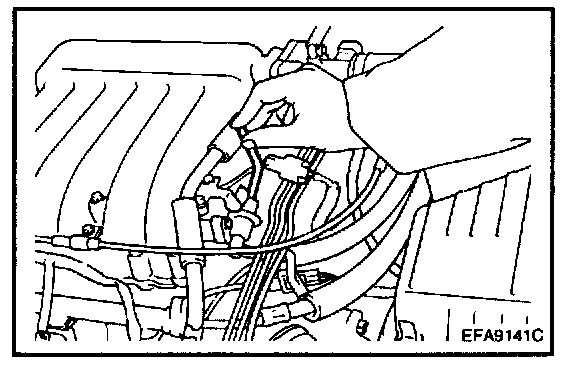 7. Disconnect the vacuum hose from the pressure regulator, and plug the hose end. Measure the fuel pressure at idle.
