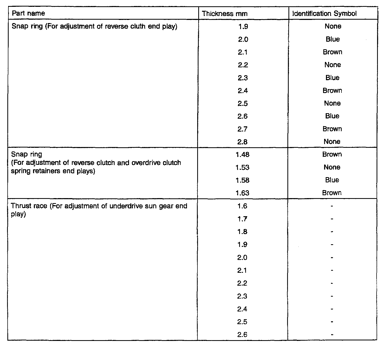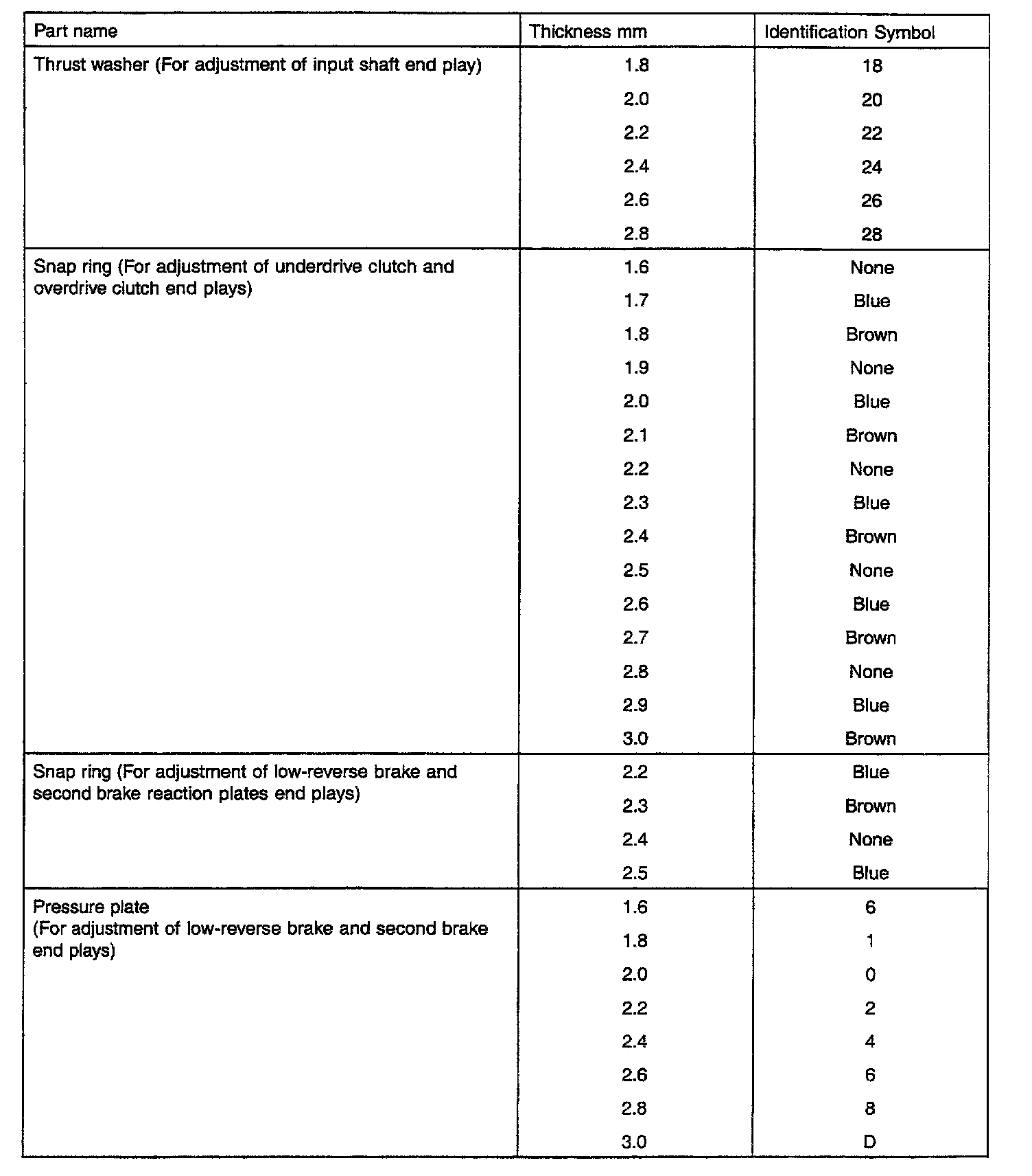 F5A51 5-spd A/T, Transaxle End Plays: