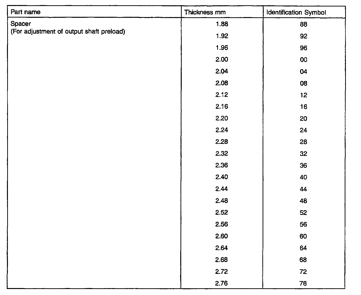 F5A51 5-spd A/T, Differential Case Preload & Side Gear/Pinion Backlash: