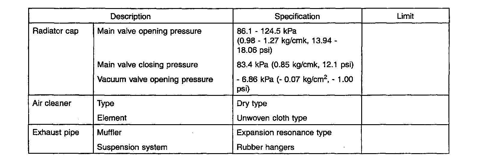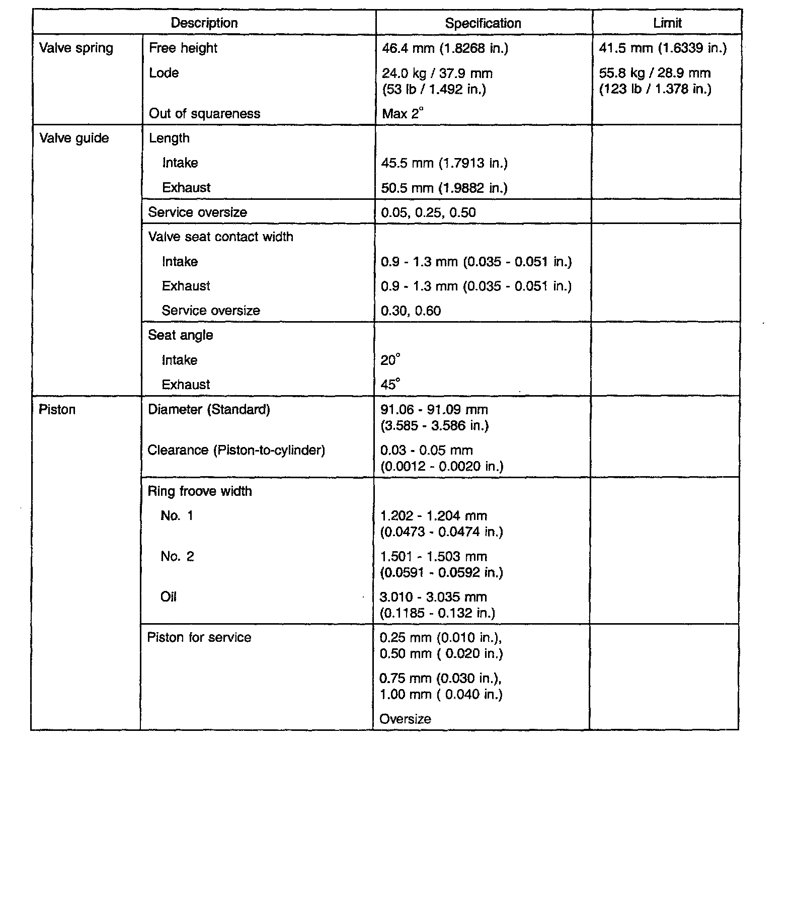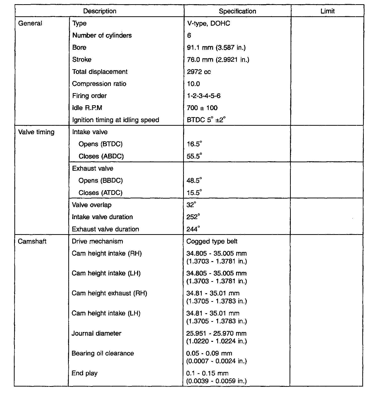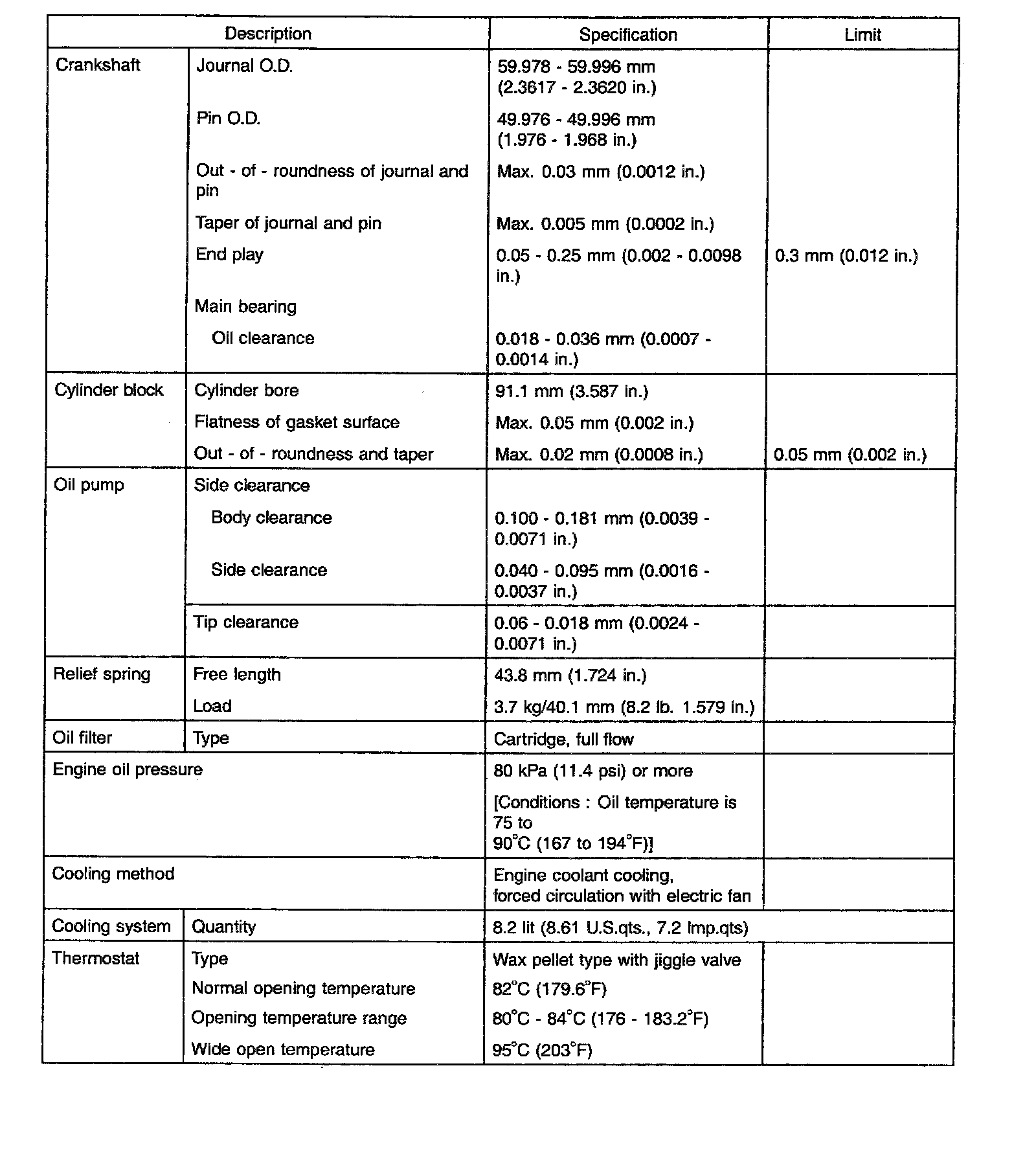 General Engine Specifications