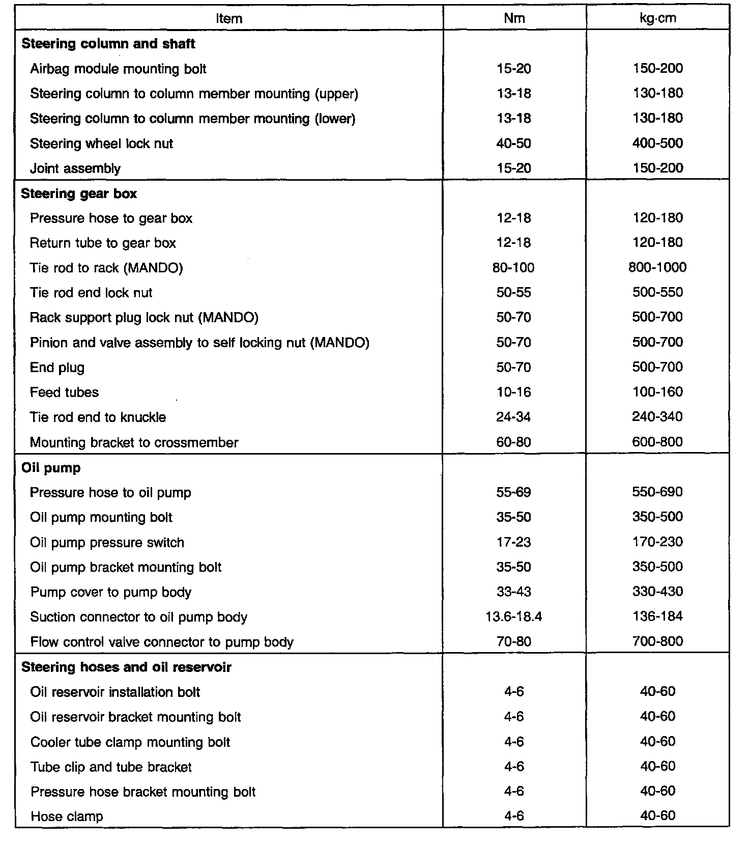 Tightening Specifications