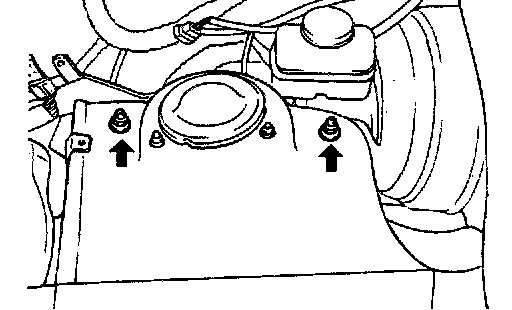 4. Remove 2 nuts on the wheel house panel and remove the upper arm assembly.