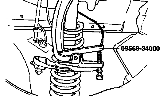 3. Using the special tools (09568-34000), disconnect the upper arm ball joint from the knuckle.