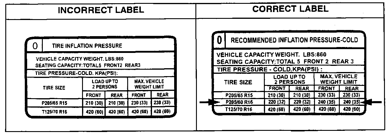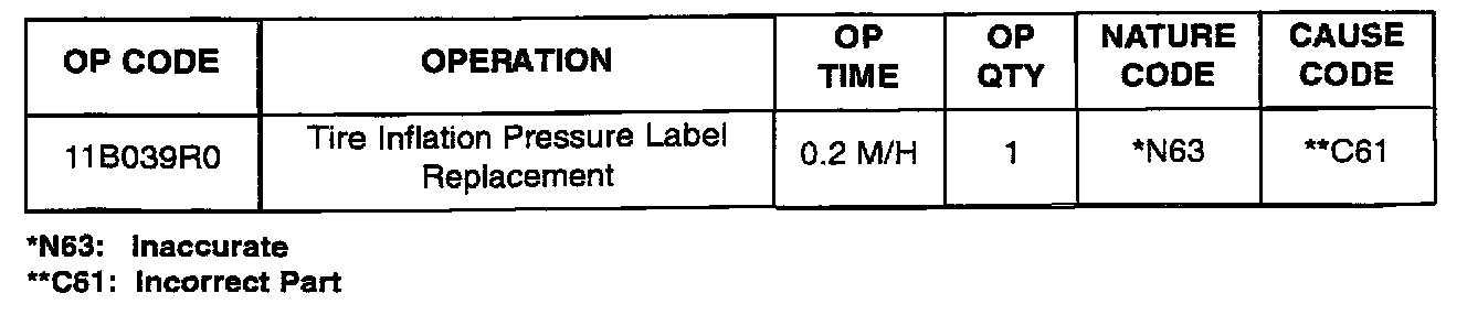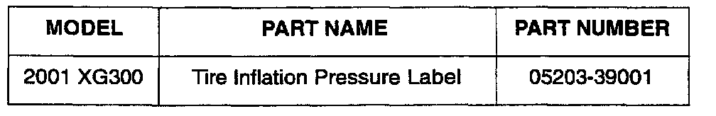 2001 XG300 TIRE INFLATION PRESSURE LABEL REPLACEMENT PROCEDURE CAMPAIGN 045