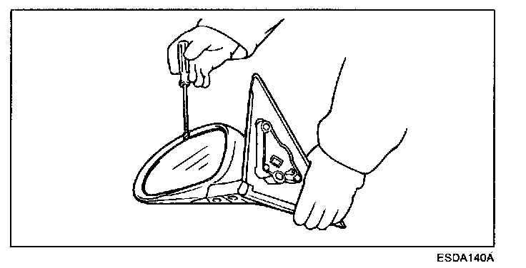 1. Insert flat tip (-) screwdriver between the outside rearview mirror holder and mirror assembly.