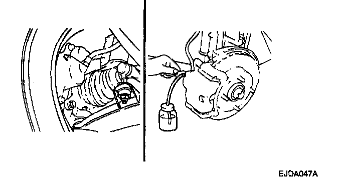 5. Pump the brake pedal several times, and then loosen the bleeder screw until fluid starts to run out without bubbles. Then close the bleeder screw.