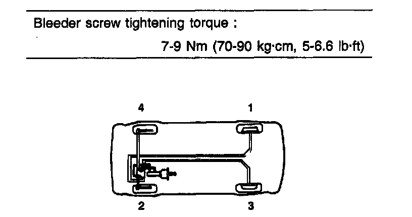 NOTE: When pressure bleeding, do not depress the brake pedal. Recommended fluid DOT3 or DOT4