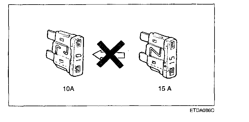 Prior to replacing the fuse with a new one, check the circuit for a short and the related parts for abnormal conditions. Only after the correction of a short or replacement of abnormal parts should a fuse with the same ampere rating be installed.