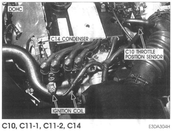 C10 Throttle Position Sensor, C11-1 Ignition Coil #1, C11-2 Ignition Coil #2, C14 Condenser: